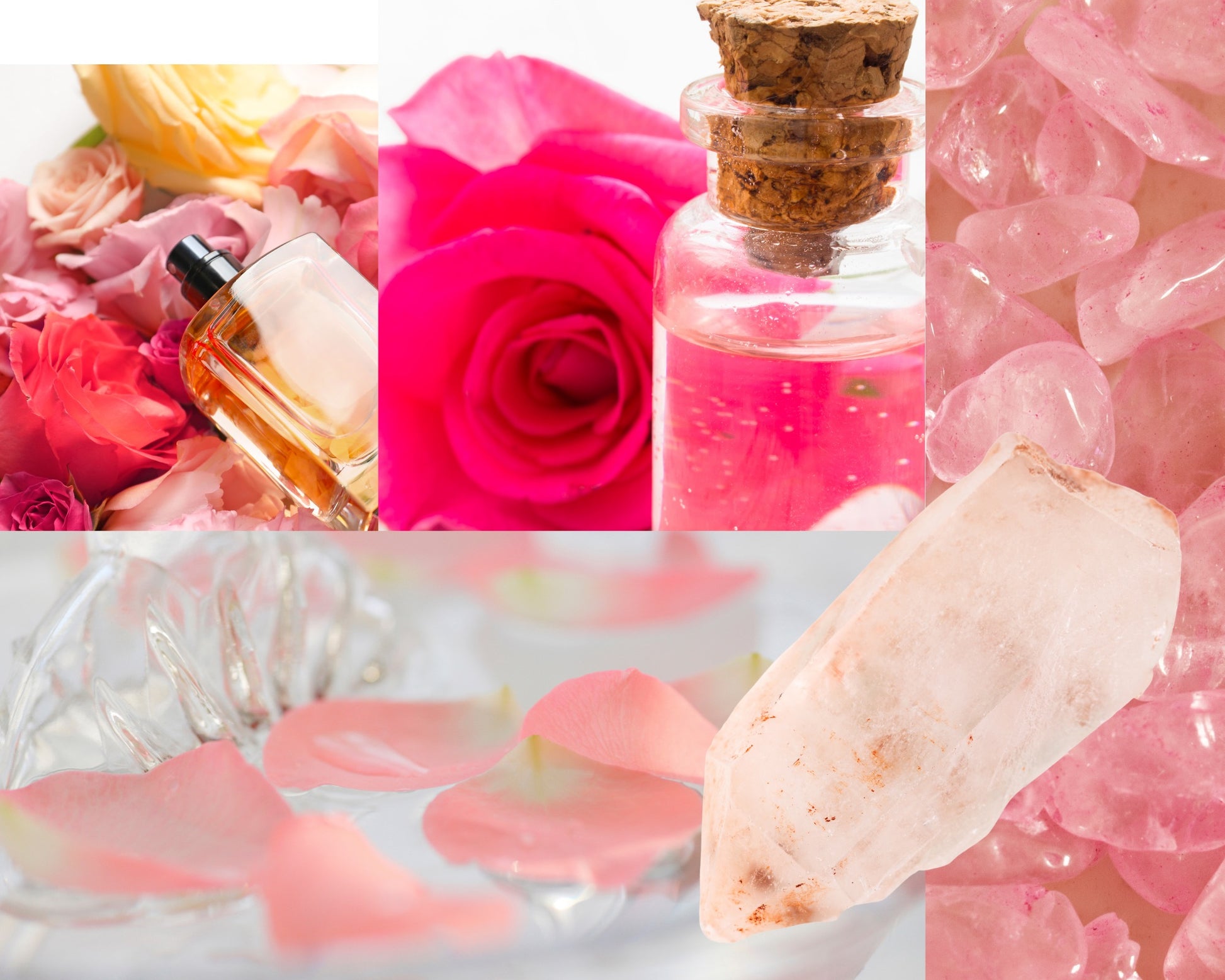 The aroma of the rose quartz crystal has been personified to resemble all the best qualities of the divine feminine attributes; gentle, patient, tender, nurturing, sophisticated and soft. She is also modern and wildly ripe as a white, pale yellow and pink succulent rose yet crystalline and transparent. She may feel youthful, sensuous and soft, but her spirit is resolved, decisive and empowered. While her aroma is tender she holds her ground without being overpowering or controling. She simply allows and accepts: as does true unconditional love.