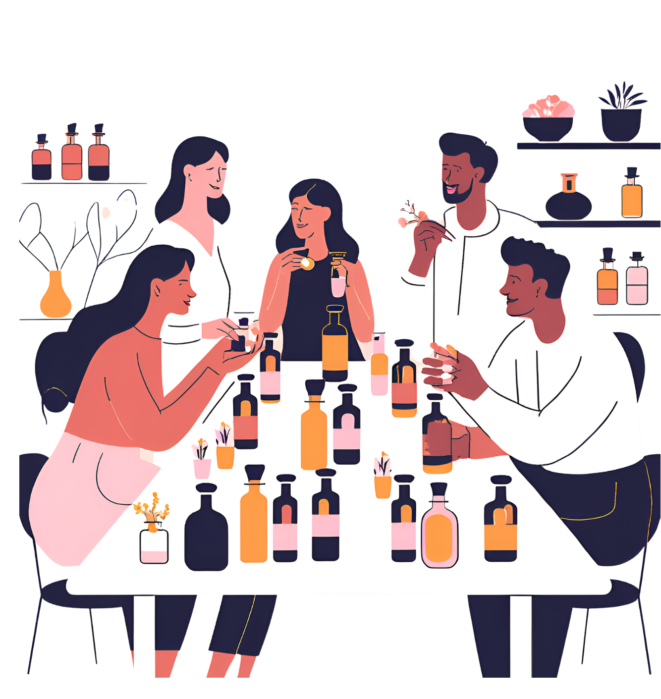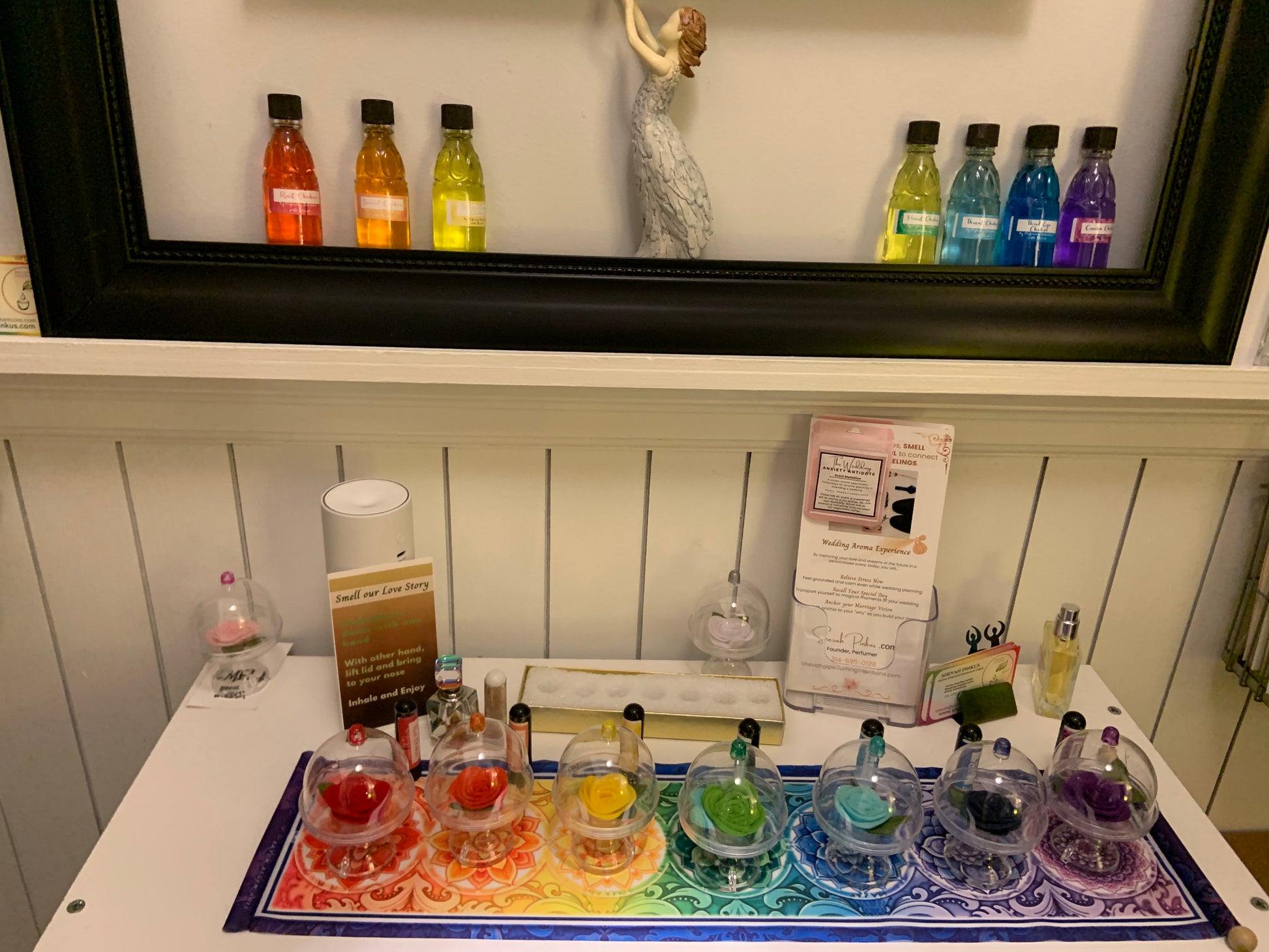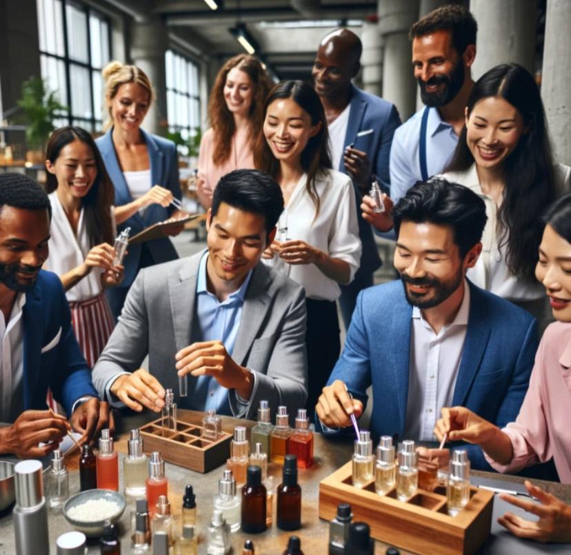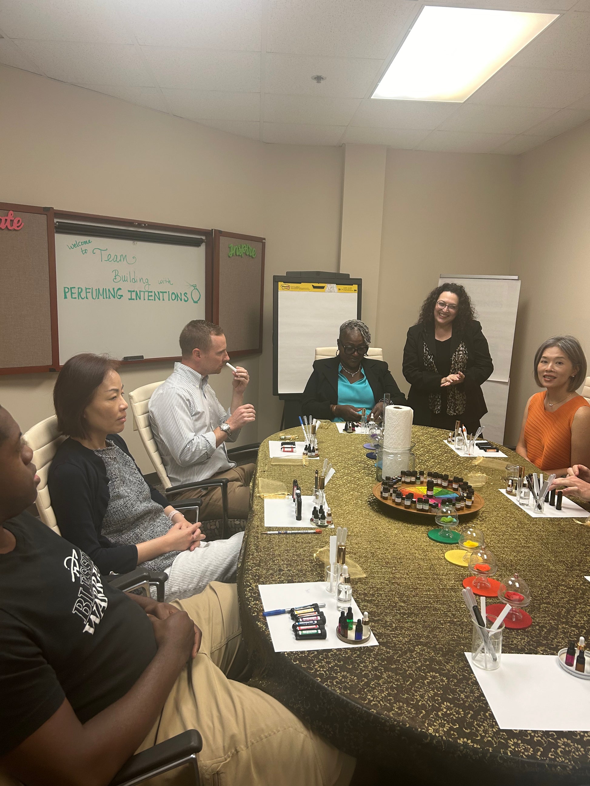 Team Building- Once the organizational scent is constructed as a base, we find it so meaningful to include the strengths each member of your staff brings to the team, represented as a unique aroma note in a collaborative scent making activity.