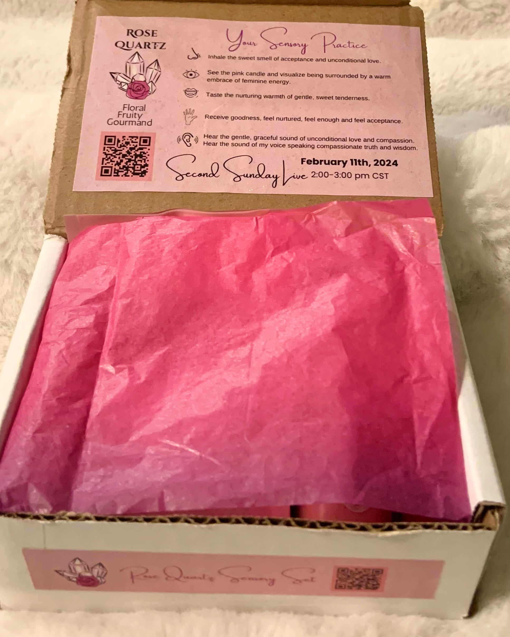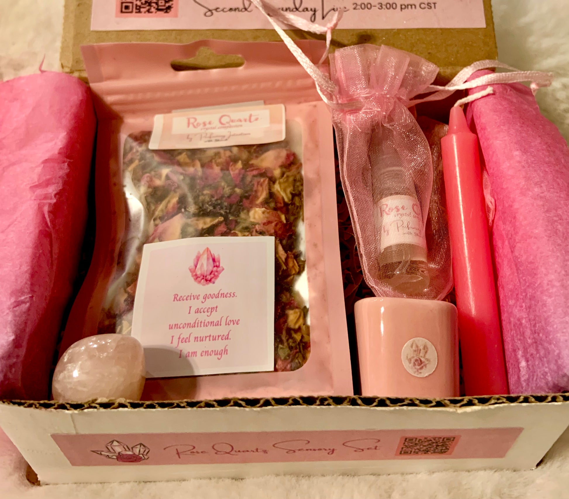 If ordered at least 15 days before this workshop, you will receive your gift set in time for our amplified Rose Quartz immersion experience.