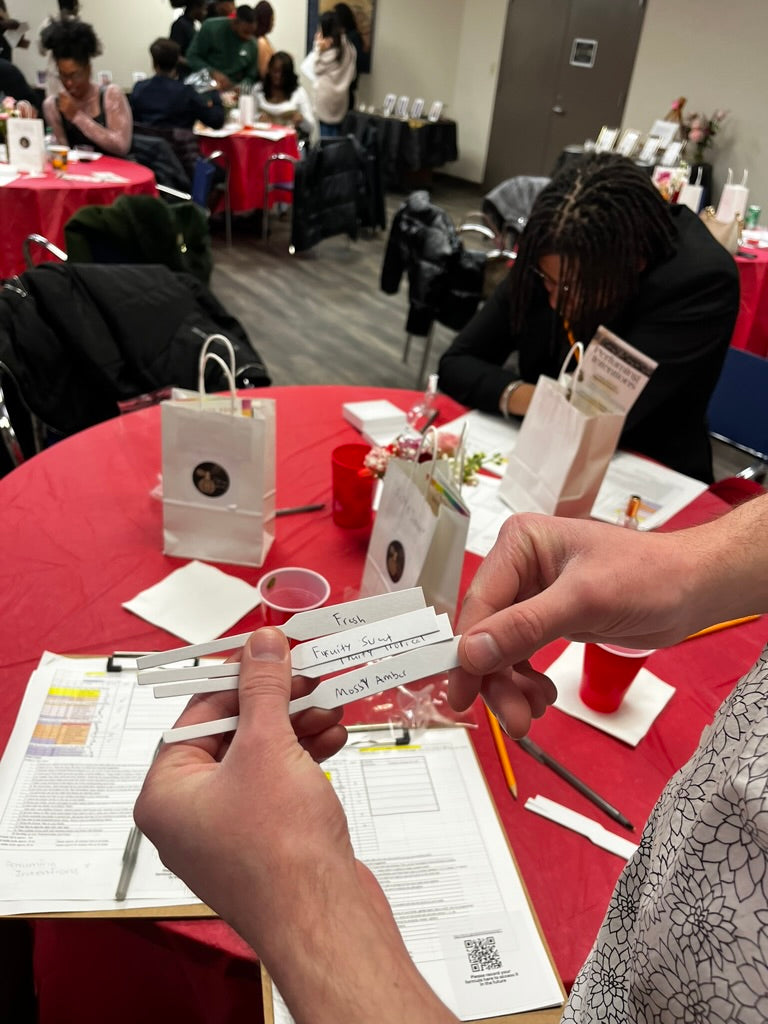 Though sensory rich dialogue prompts, you have an opportunity to tell each other your love story as we help you translate it into aromatic notes.