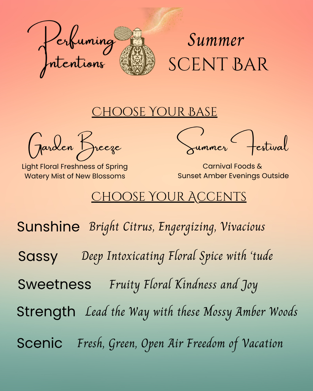 Create a 15ml custom scent the Garden Breeze or Summer Festival as your base. Mix and match up to 3 additional accents.